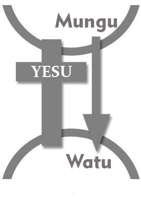 Kuna umbali, pengo kati yetu na Mungu. Mishale inaonyesha juhudi zetu za kumfikia Mungu...kuwatendea wengine mema, matambiko ya kidini, kujaribu kuwa mtu mwema, n.k. Lakini tatizo ni kwamba hakuna hata moja ya jitihada hizi nzuri zinazofunika dhambi zetu au kuziondoa.